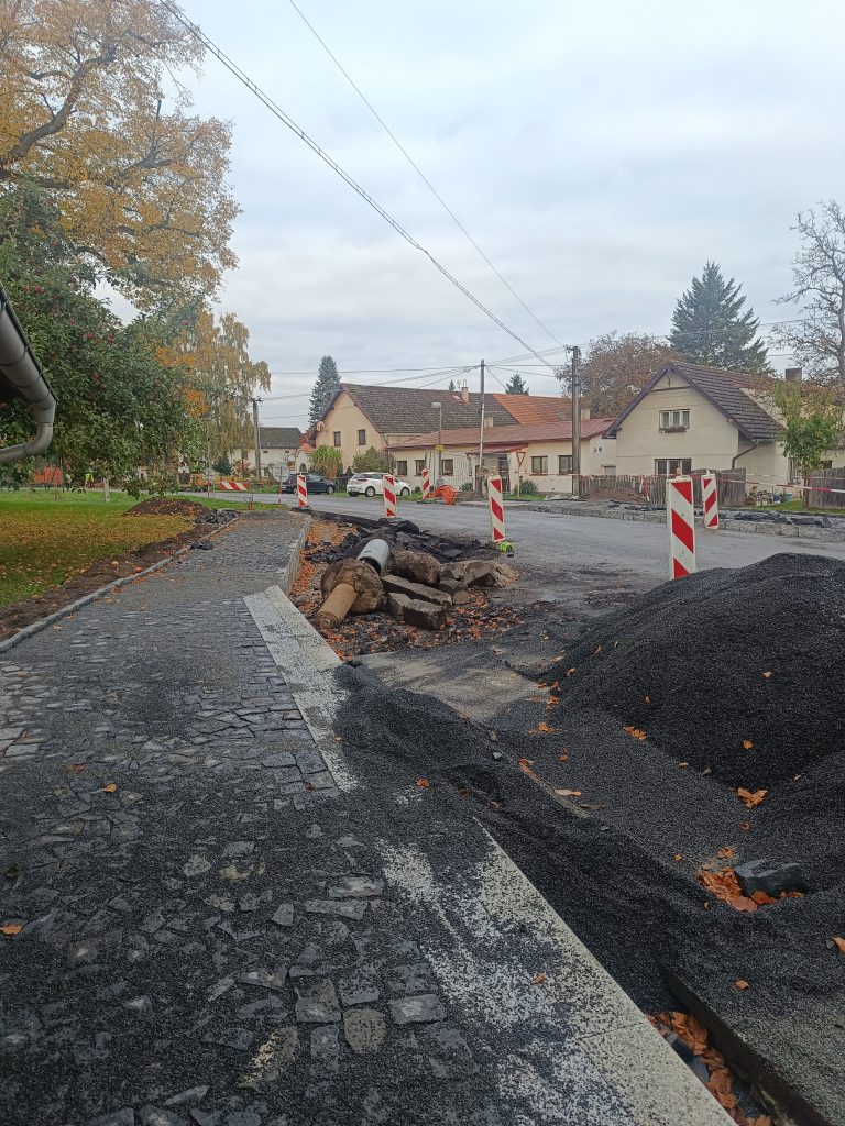 ▶️ Práce na novém chodníku v Březince se pomalu blíží do finále. ▶️ Aktuálně se dokončuje dláždění v úseku od rybníka směrem k návsi, dále probíhá pokládka nových rozvodů pro veřejné osvětlení na návsi podél hlavní komunikace a současně začínají práce na poslední části trasy ➡️ od konce obce ve směru na Katusice.