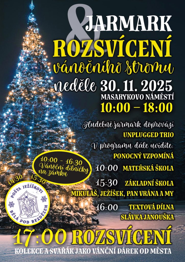 Nezapomeňte navštívit také bělský zámek, kde na vás čeká krásně nasvícený dřevěný betlém, tvořivé dílničky s výrobou čertů či Mikulášů a také občerstvení z restaurace U Vejra.