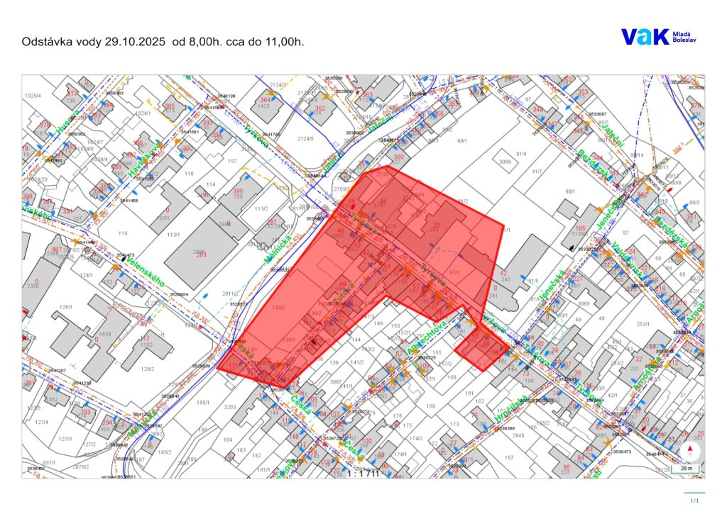 Oznamujeme občanům, že ve středu 29.10.2025 v době od 8:00 do cca 11:00 hodin dojde z důvodu opravy vodovodu k plánovanému přerušení dodávky pitné vody v Bělé pod Bezdězem v části ulic: Tyršova, Mělnická, Česká a Tutova, viz. přiložená mapa.