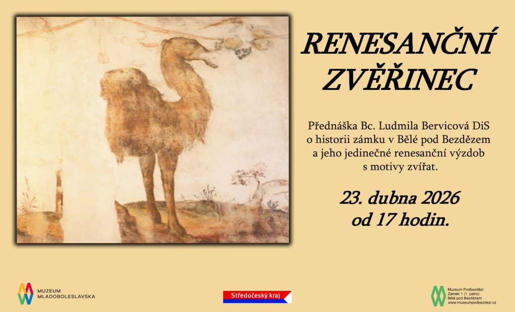 Muzeum Podbezdězí vás zve na zajímavou přednášku „Renesanční zvěřinec“, kde vám Bc. Ludmila Bervicová DiS přiblíží nejen historii bělského zámku, ale především unikátní renesanční výzdobu s motivy zvířat, která byla odhalena teprve v roce 2022 ve Valdštejnském sále.
